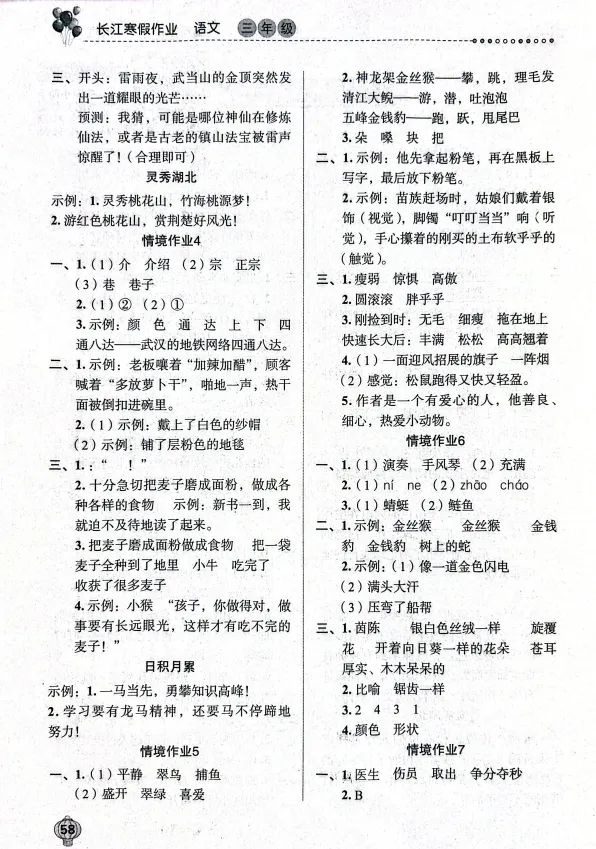 据悉,很多学校的语文寒假作业是发的《长江寒假作业》,小编给大家收集了小学语文的参考答案,一起来看看吧~
