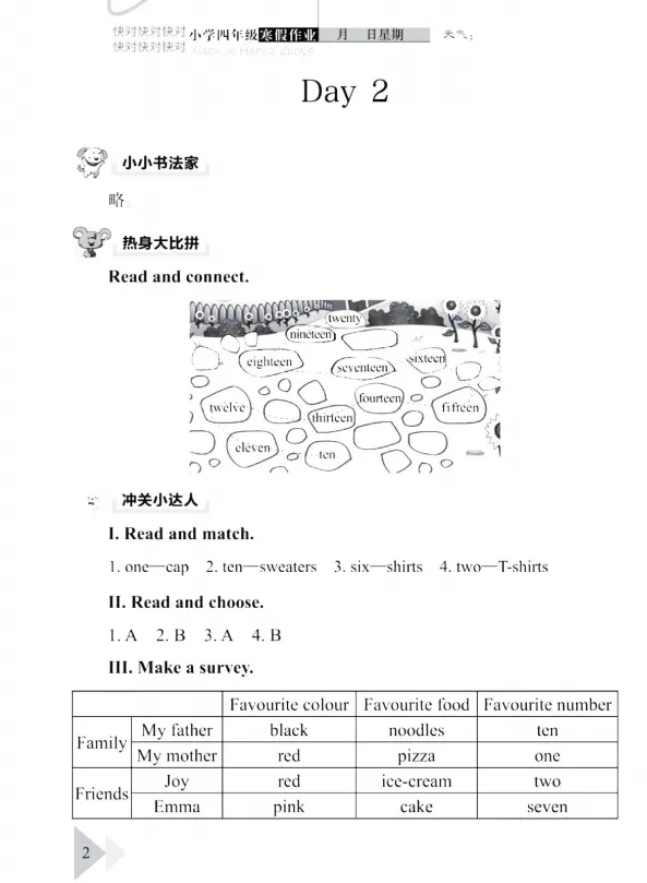 《开心假期寒假作业》是针对小学生和初中生设计的寒假学习资料,涵盖语文、数学、英语等主要学科,旨在帮助学生巩固知识、提升学习能力的同时,享受假期学习的乐趣。