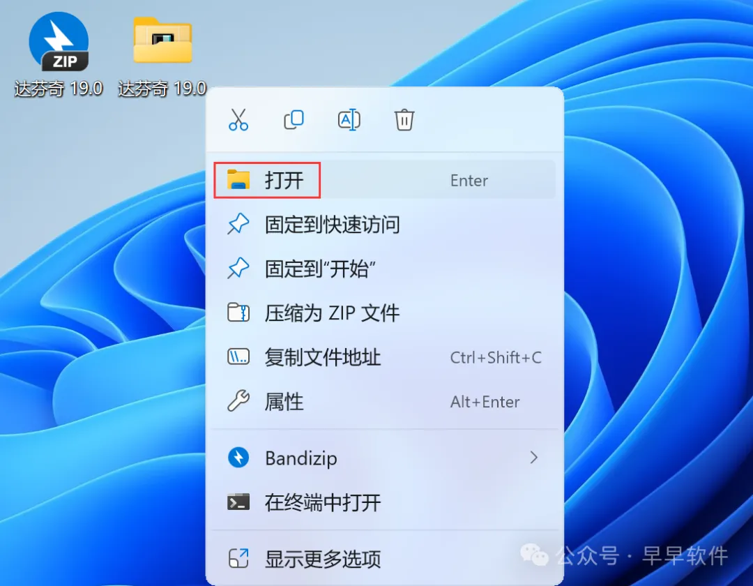 1、下载达芬奇 19.0软件安装包到电脑上,右键选择【解压到达芬奇 19.0\】