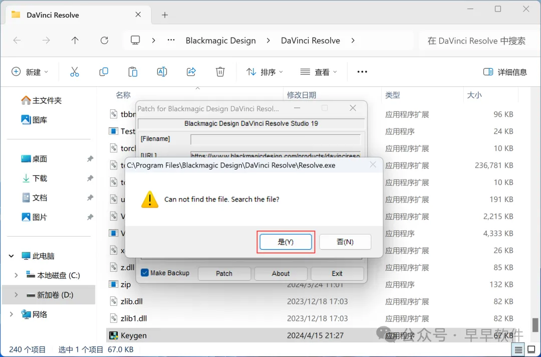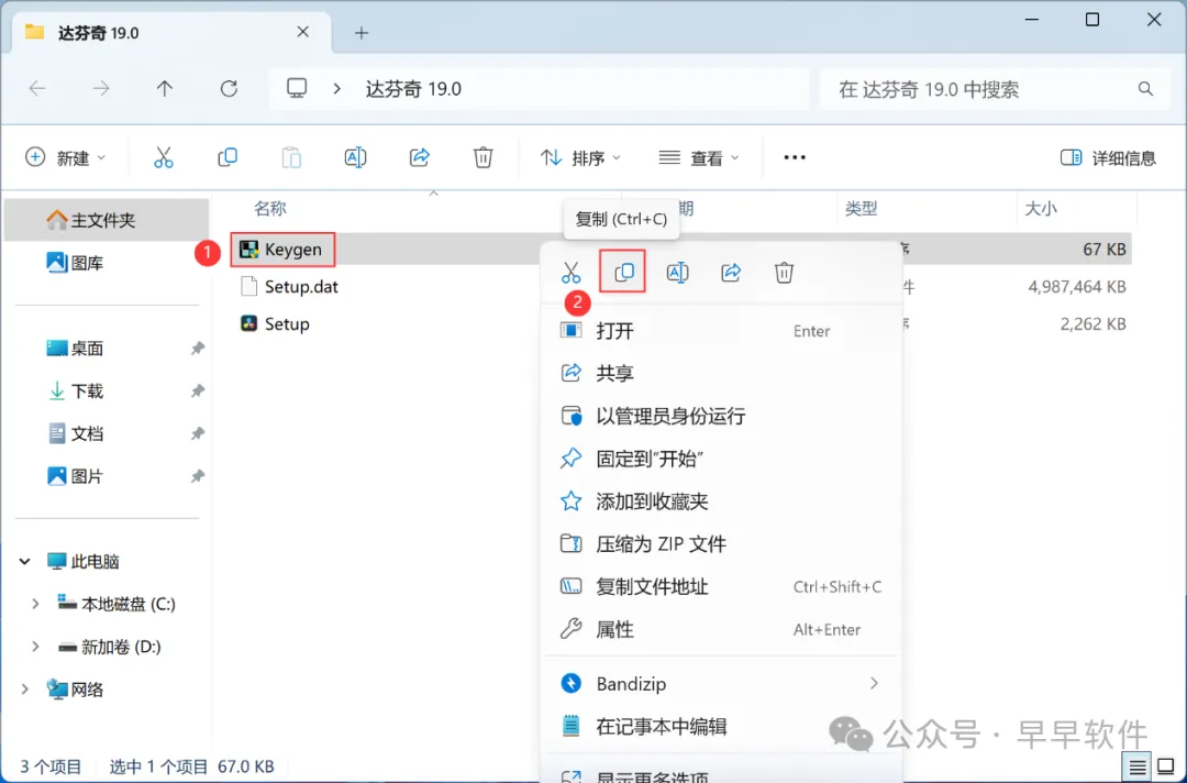 12、回到达芬奇 19.0文件夹,找到【Keygen】应用程序,再右键点击【复制按钮】