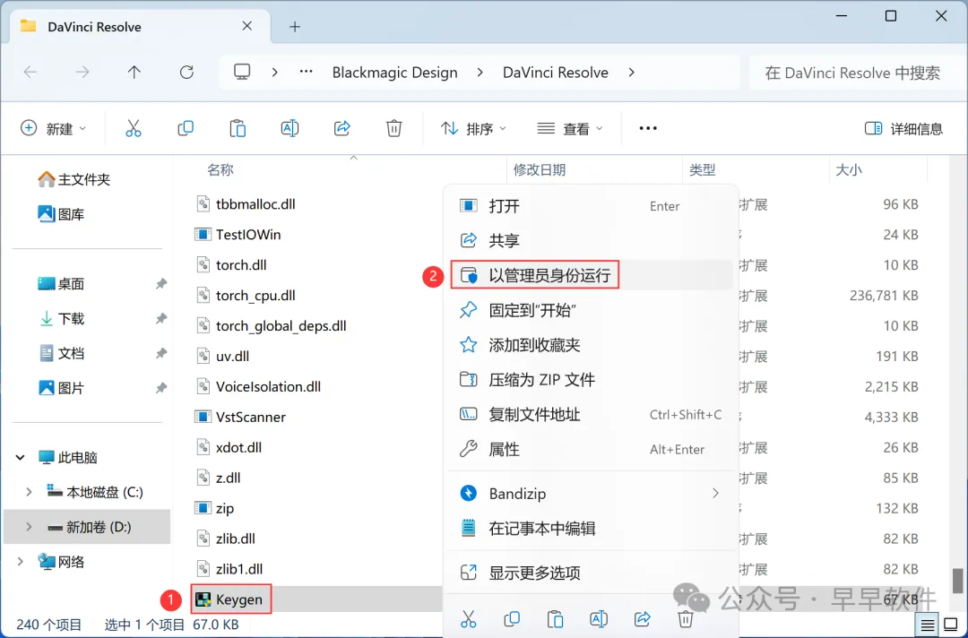 15、找到粘贴的【Keygen】应用程序,再右键选择【以管理员身份运行】它
