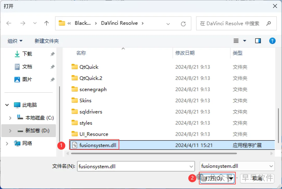 20、找到并选中【fusionsystem.dll】文件,再点击【打开】