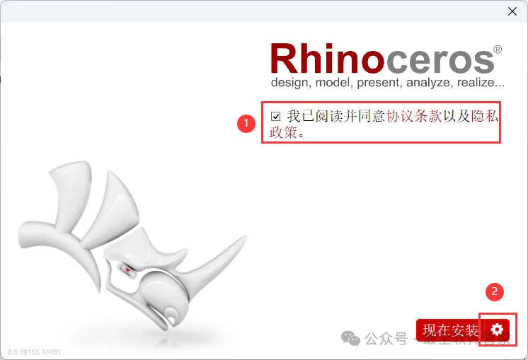 4、勾选【我已阅读】,再点击现在安装后面的【设置按钮】