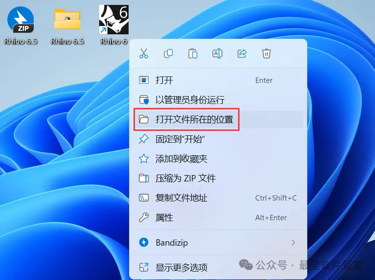 9、回到桌面,右键桌面上的【Rhino 6软件图标】,点击【打开文件所在的位置】