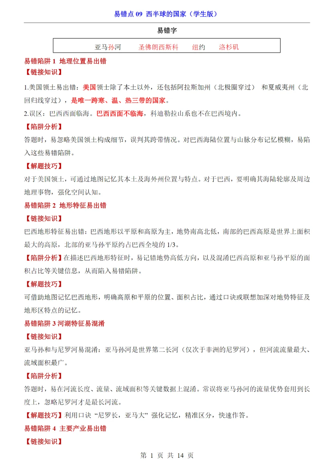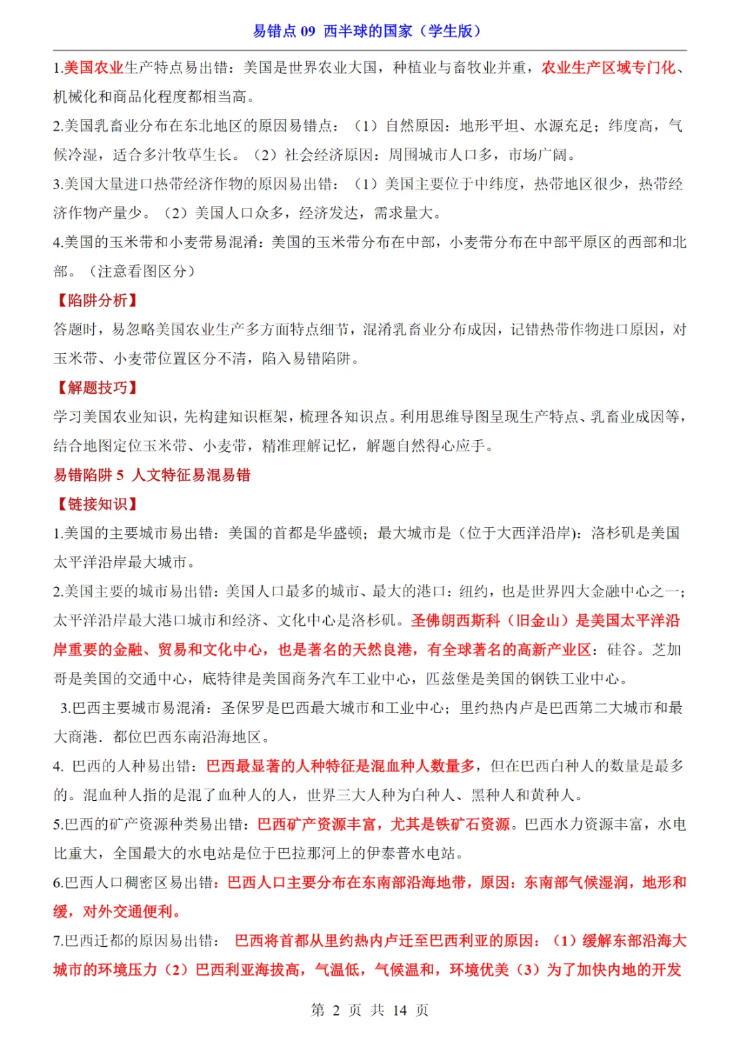 【免费下载】会考专项地理易错点09 西半球的国家,PDF电子版,可打印