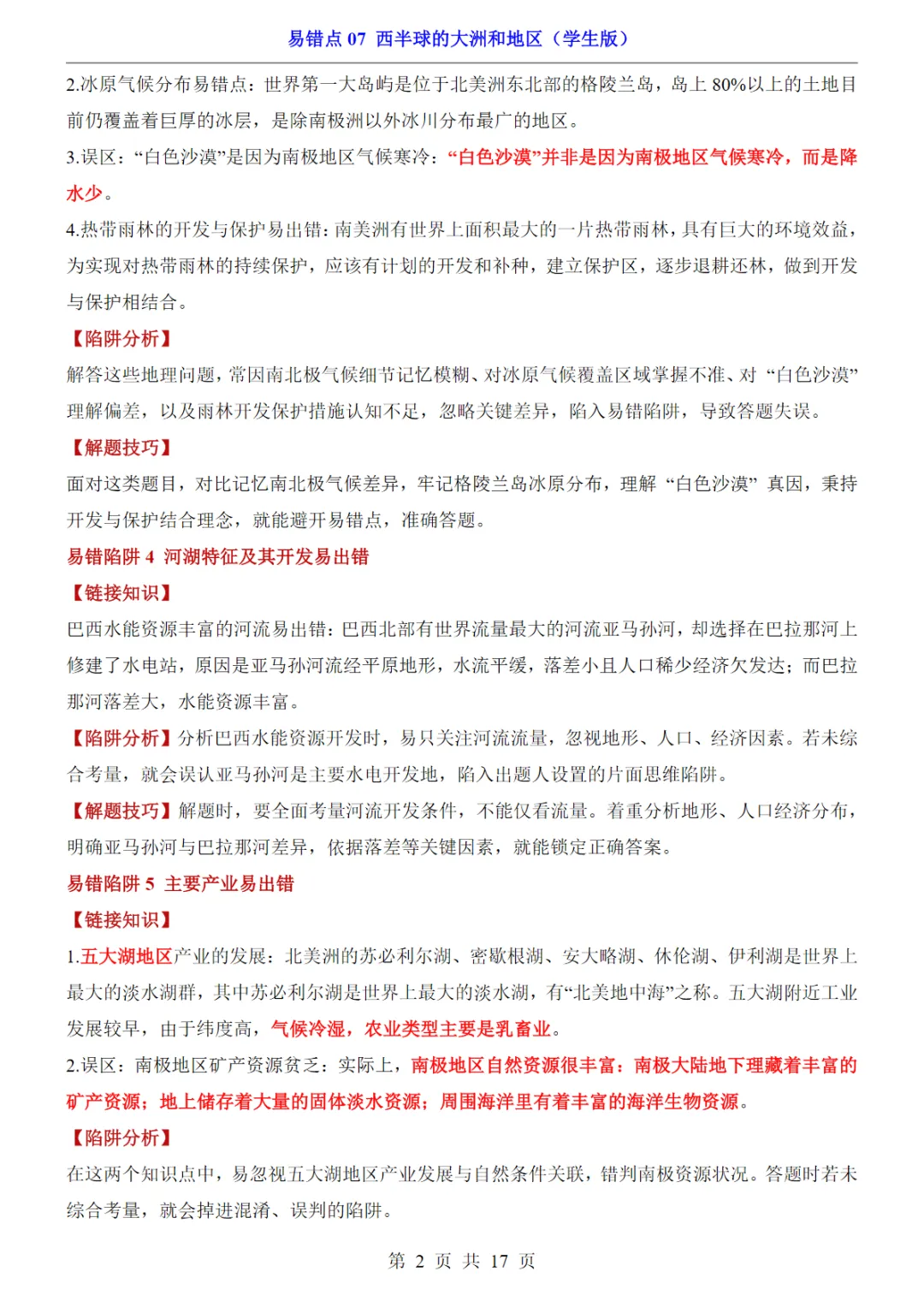 【免费下载】会考专项地理易错点07 西半球的大洲和地区,PDF电子版,可打印