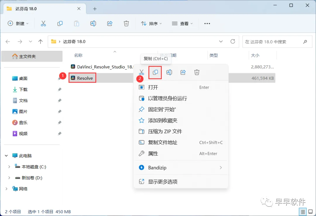 1、下载达芬奇 18.0软件安装包到电脑上,右键选择【解压到达芬奇 18.0\】
