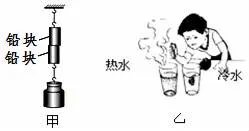 14. 图(甲)所示的实验现象说明分子间存在_____,图(乙)所示的实验现象说明_____越高,分子热运动越剧烈。