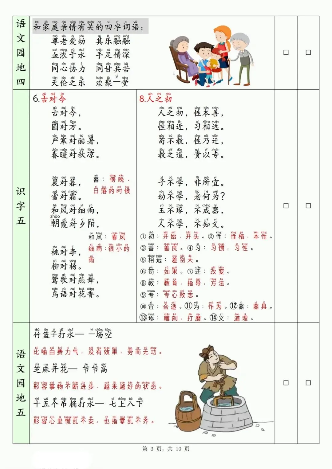 【免费下载】26春一年级下册语文寒假背诵默写表(背诵+默写10页)