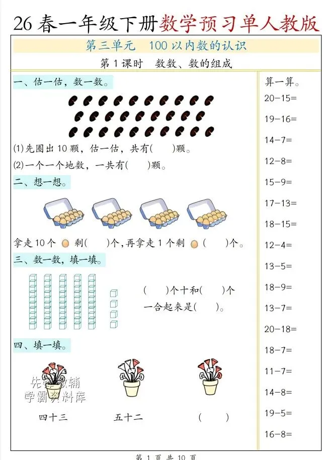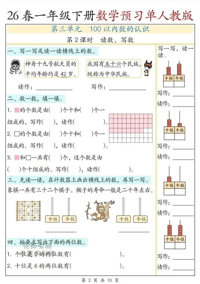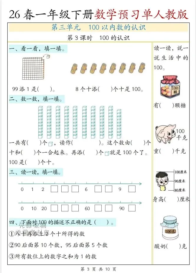 今天给大家整理了26春一年级下册数学人教版第三单元预习单,转发给朋友或班级群,受益更多人,帮助孩子学习!