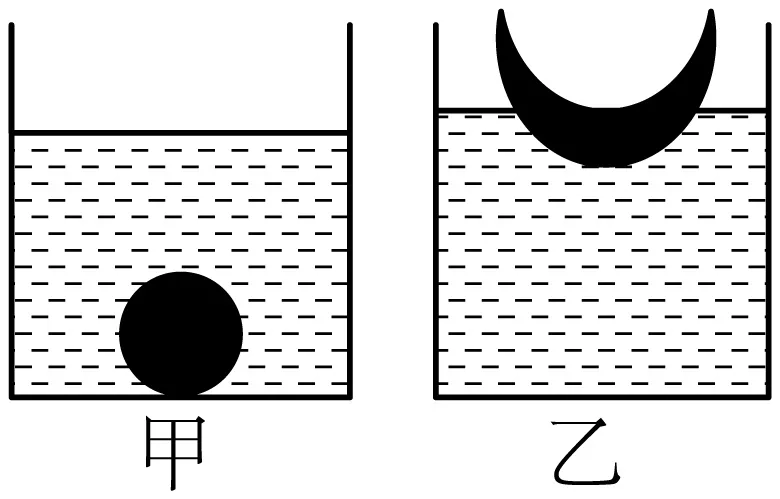 9. 把一块橡皮泥捏成实心球状,轻轻放到烧杯内的水面上,静止之后,实心球橡皮泥沉到容器底部,再把它捏成碗状,轻轻放到该烧杯内的水面是上,橡皮泥漂浮在水面上,如图所示,则下列说法正确的是( )