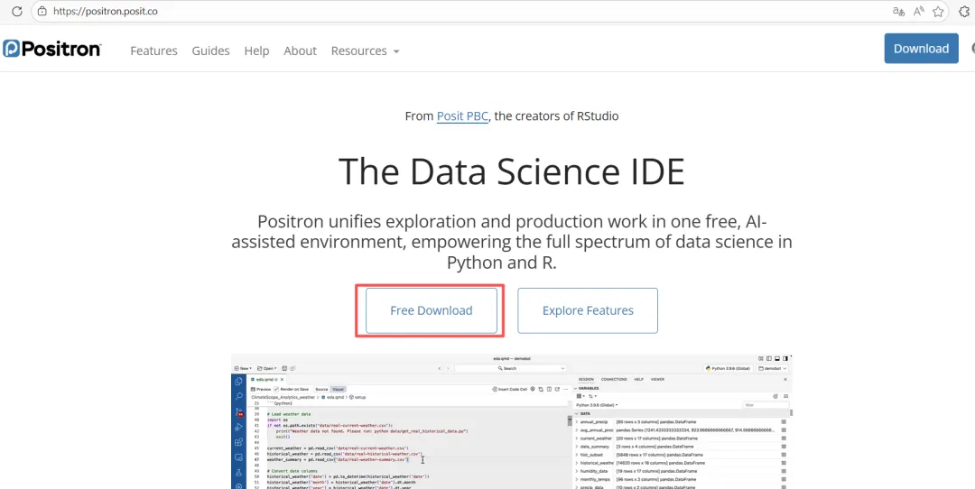 Rstudio母公司Posit团队推出Positron编译器,是一个数据科学为中心的IDE。Positron实现了R和Python的平权,兼容了两种语言。