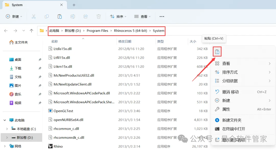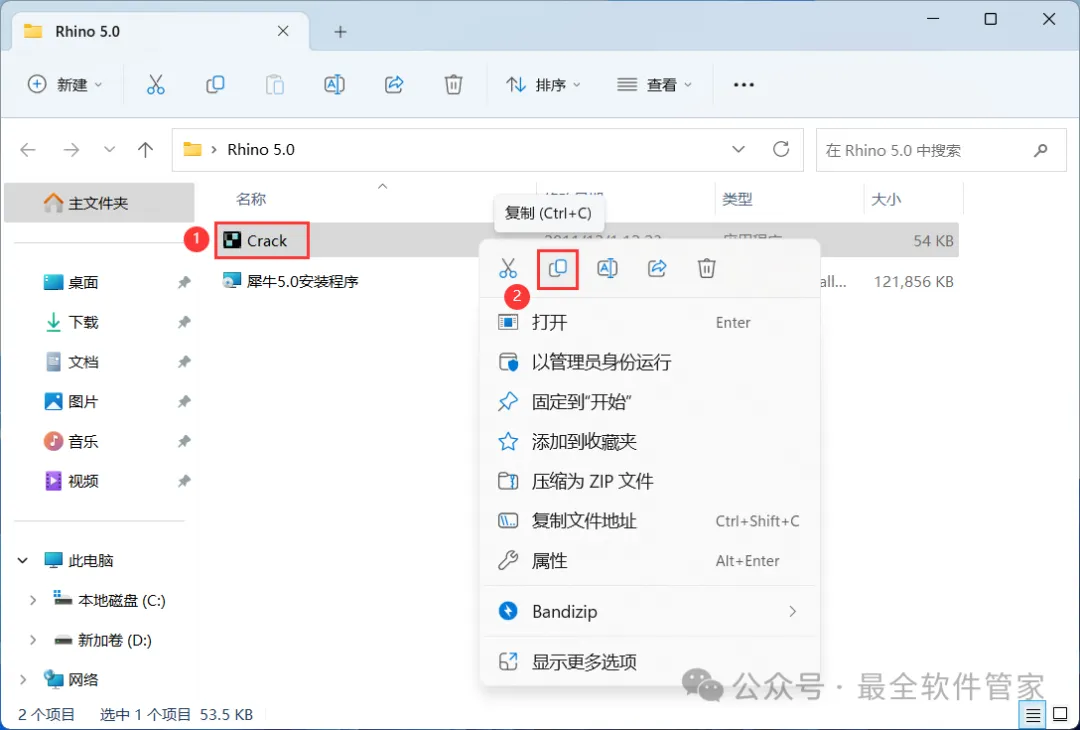 11、回到Rhino 5.0文件夹,找到【Crack】程序,再右键点击【复制按钮】