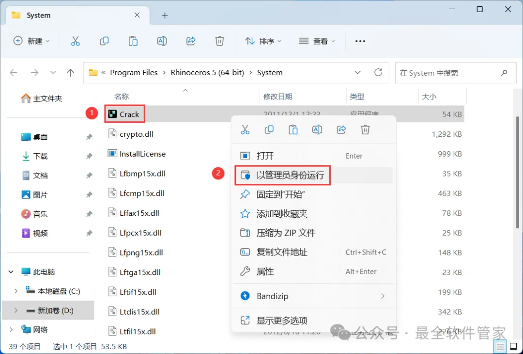 14、找到粘贴的【Crack】程序,再右键选择【以管理员身份运行】它