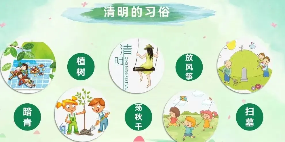 古代清明节有荡秋千的习俗,秋千最早叫“千秋”,后为避忌讳改为“秋千”。荡秋千不仅能锻炼身体,还象征着摆脱烦恼、迎接新生活。