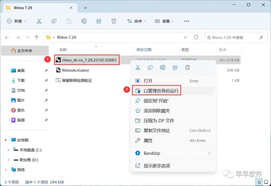 3、找到【rhino_zh_cn_7.29】应用程序,右键选择【以管理员身份运行】它