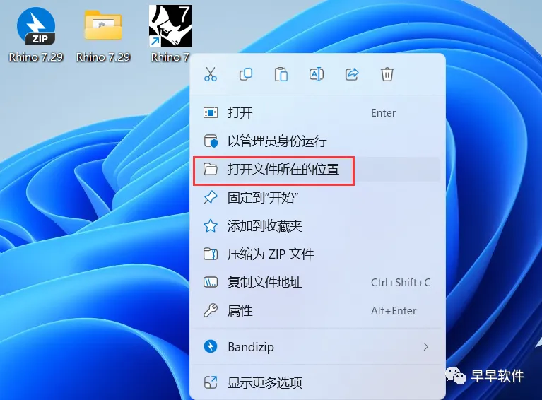 11、回到桌面,右键桌面上的【Rhino 7软件图标】,点击【打开文件所在的位置】