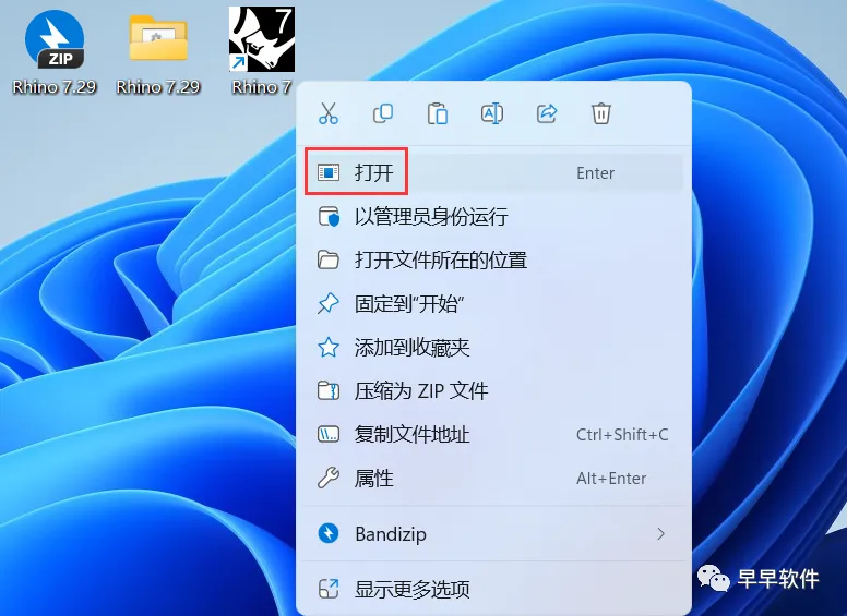16、回到桌面,右键桌面上的【Rhino 7软件图标】,点击【打开】
