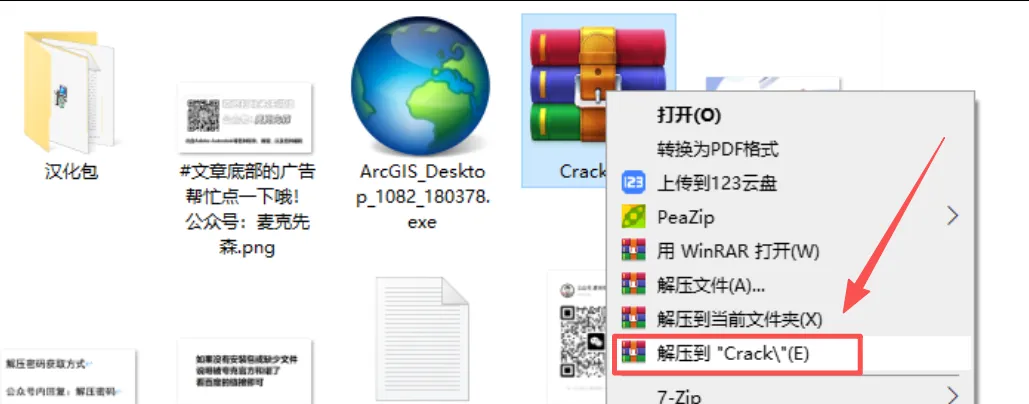 18,返回安装文件夹,打找到【Crack】鼠标右键选择【解压到Crack】。