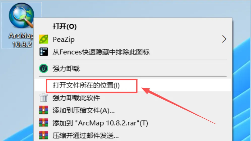 21,在桌面上找到【ArcMap 10.8.2】软件图标,鼠标右键选择【打开文件所在位置】。