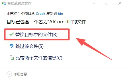 23,选择【替换目标中的文件】。