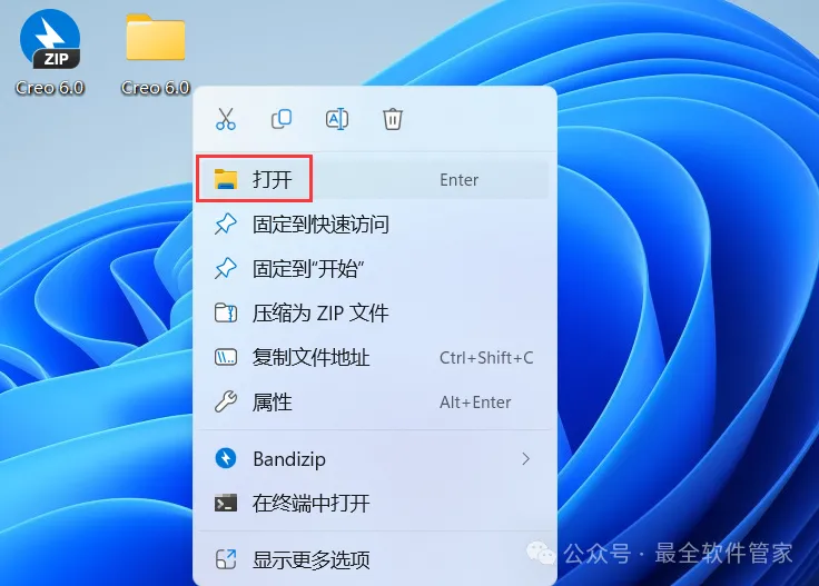 34、回到桌面,右键桌面上的【Creo 6.0软件图标】,点击【打开】