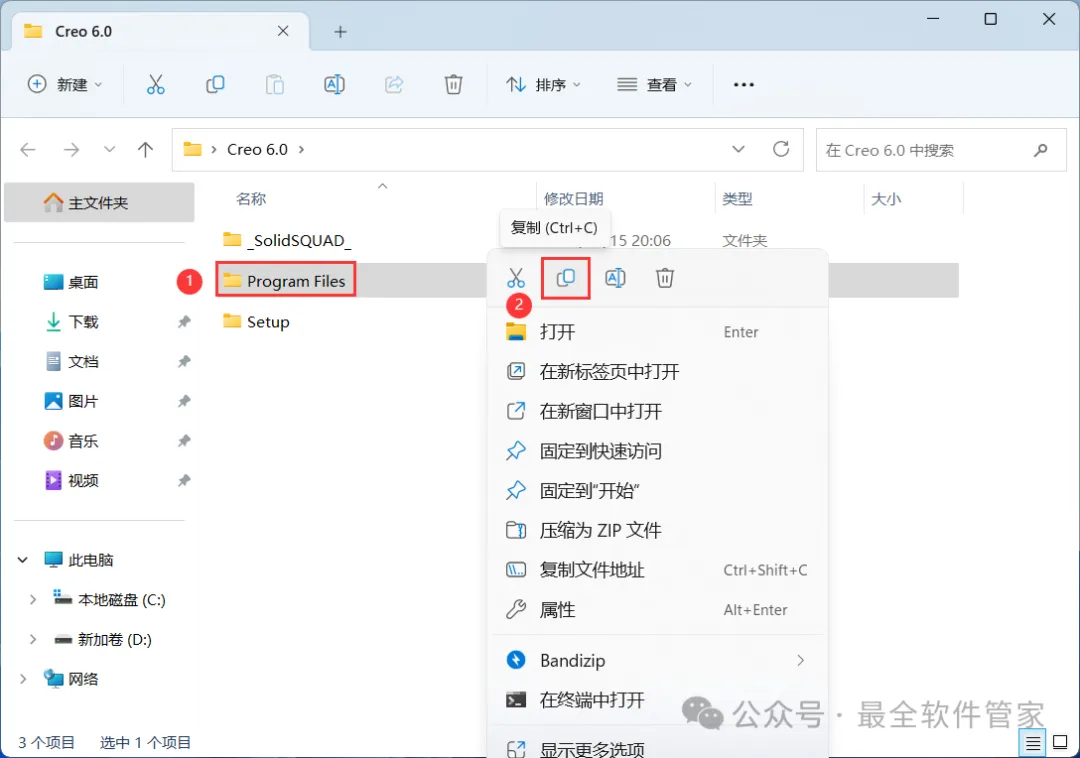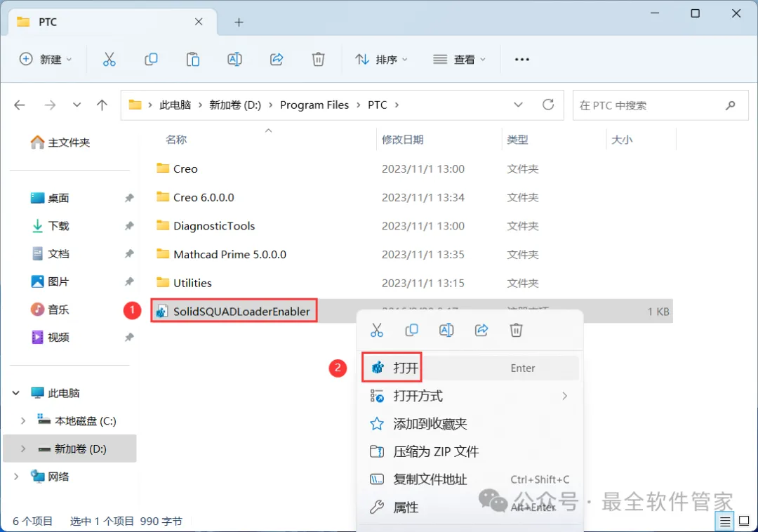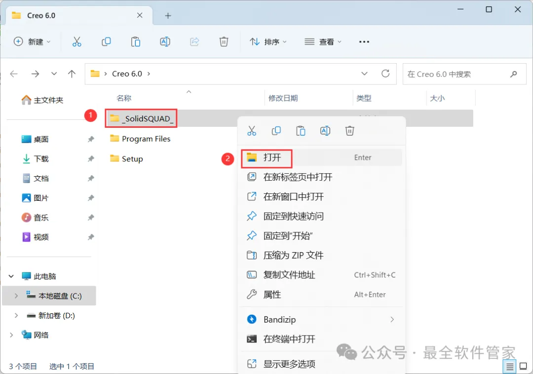 26、回到Creo 6.0文件夹,找到【_SolidSQUAD_】文件夹,右键【打开】它