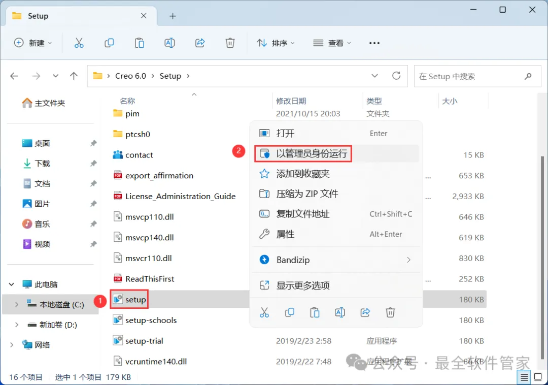 18、回到Creo 6.0文件夹,找到【Setup】文件夹,右键【打开】它