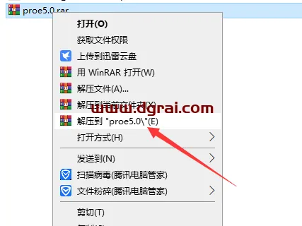 首先就是下载proe5.0中文破解版的软件,这个Proe5.0破解版无需安装,解压之后只需修改ip即可使用,首先就是解压这个安装包软件,解压之后打开文件夹。