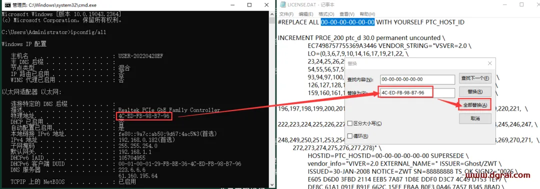 然后把自己的电脑主机ip输入到替换框里面,点击全部替换。