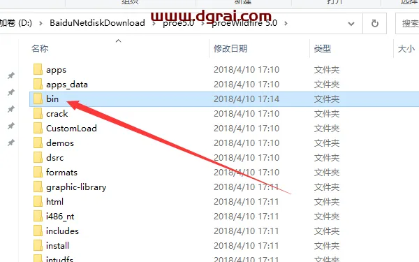 找到proe5.0文件夹内的crack文件夹,点击打开。