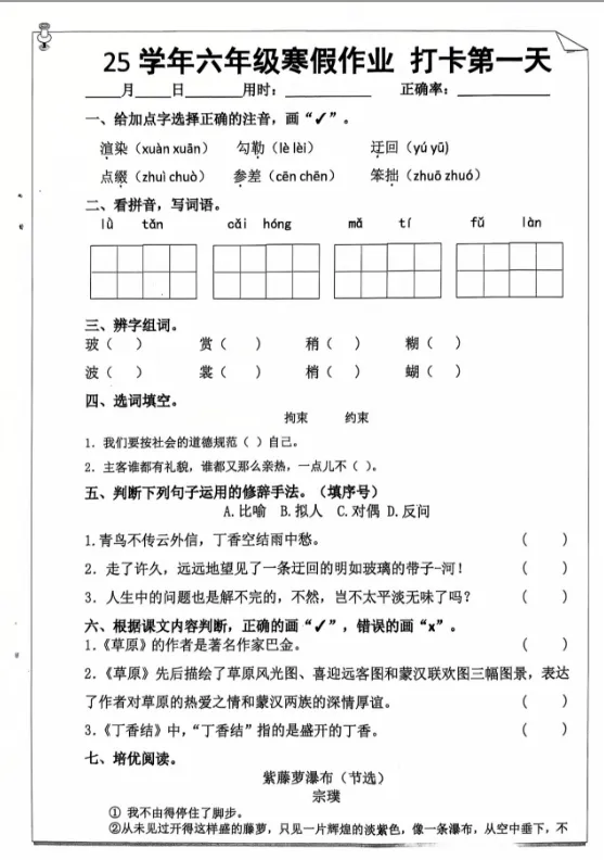 halo呀,家长朋友们!今天收集汇总了小学1-6年级下册语文寒假每日一练,家长可以扫码领取~