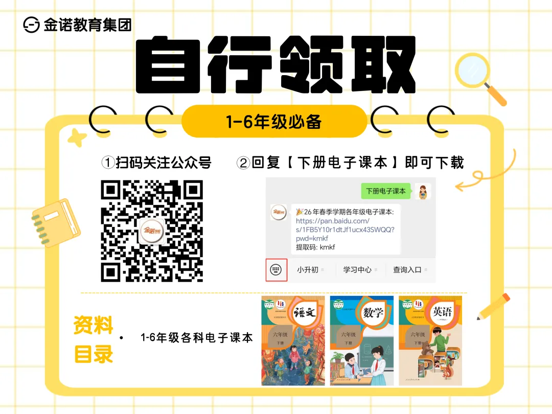 关于预习,肯定需要用到下学期课本教材,小金给家长们整理了一至六年级(下册)语文、数学、英语、科学、道法等电子课本,免费下载!