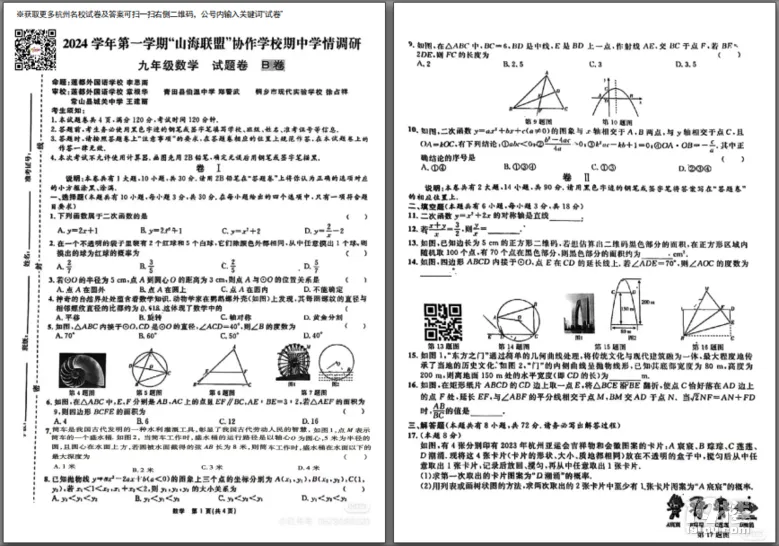 今天为大家准备的是家长上传的2024学年浙江山海联盟九年级期中考试数学试卷B卷,获取试卷完整电子版pdf免费下载及参考答案分析请点击文中的小程序!