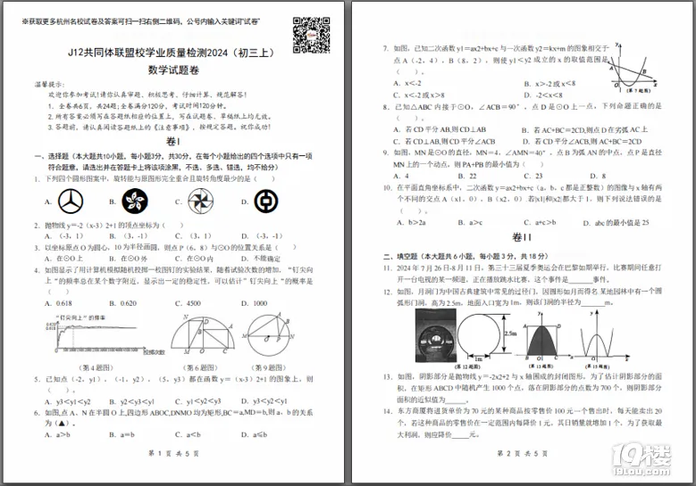 今天为大家准备的是家长上传的2024-2025学年J12共同体联盟九上数学期中试卷,获取试卷完整电子版pdf免费下载及参考答案分析请点击文中的小程序!