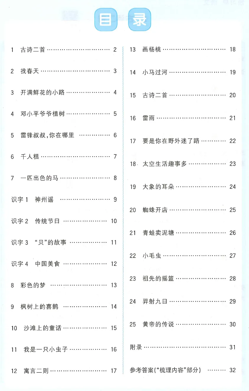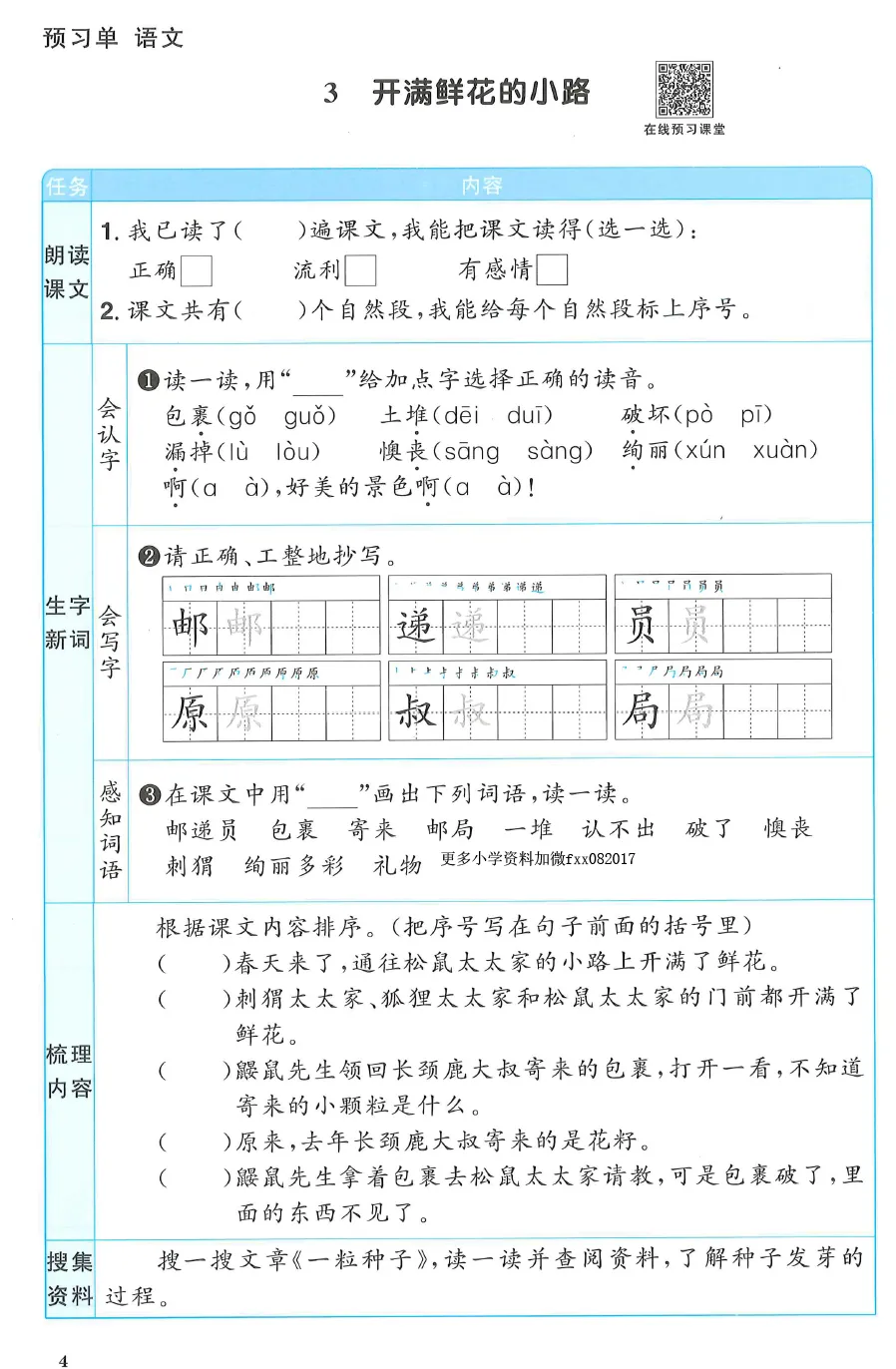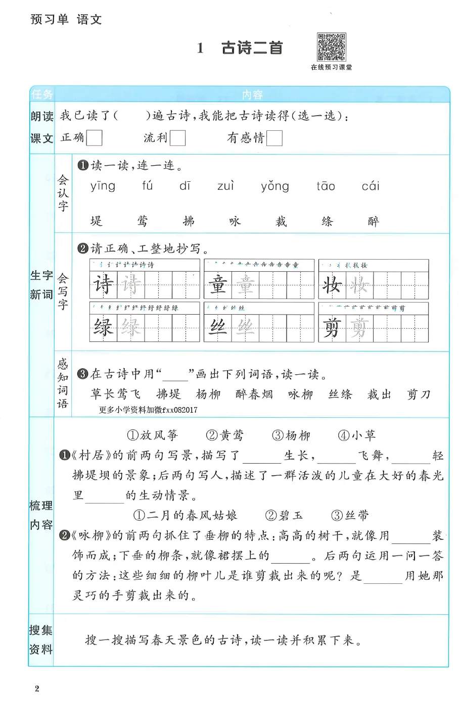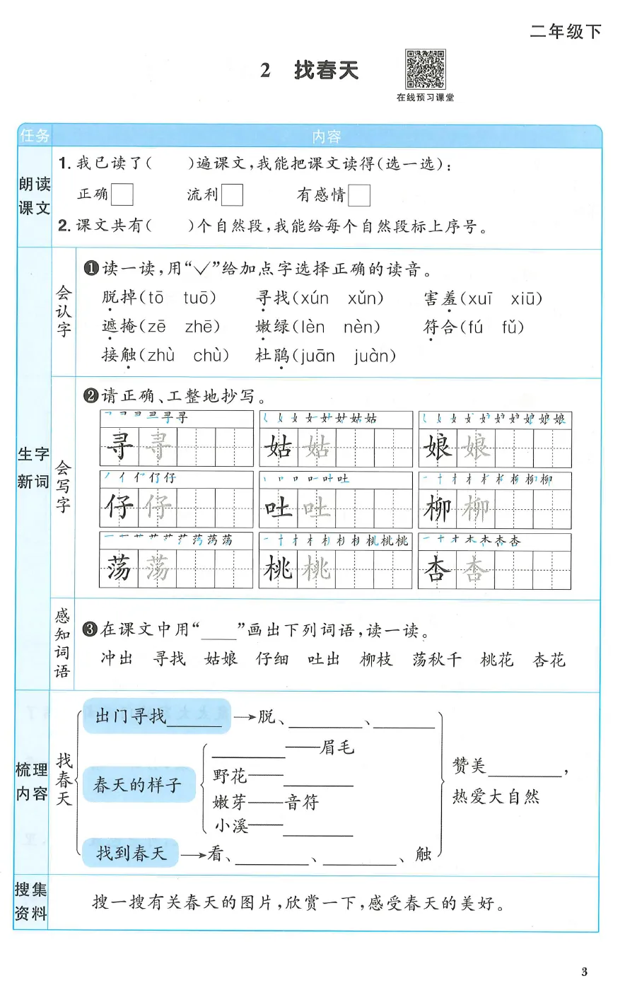 2年级下语文预习单【阳光同学】