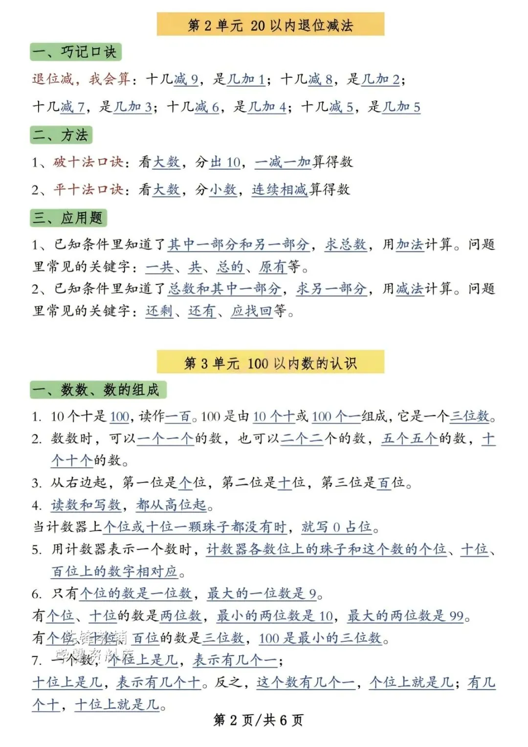 一年级(下)数学知识点汇总《人教》