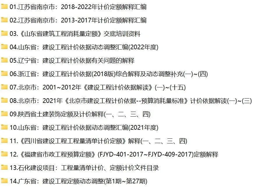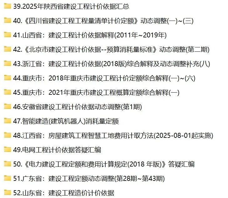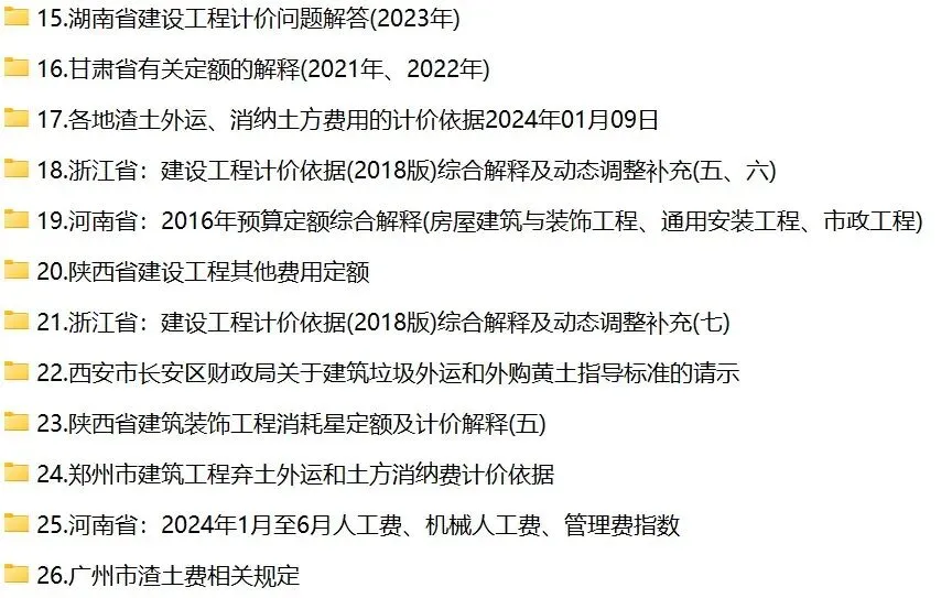 造价人家园通过2年多的时间,已经收录了52份与定额计价解释、定额动态调整、渣土消纳、城市更新等相关的计价文件。