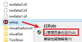 13.找到并选中“setup”文件,右键选择“以管理员身份运行”