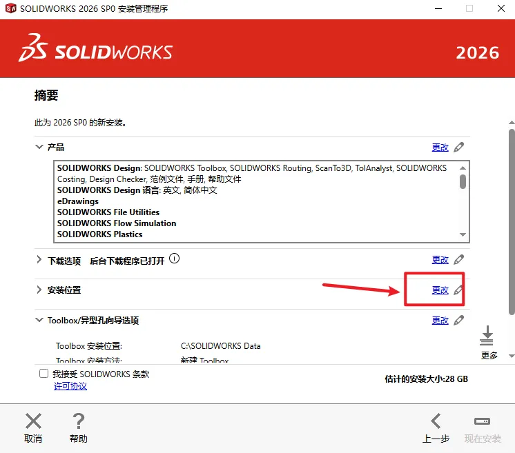 18.点击“安装位置”后的“更改”选择软件安装路径