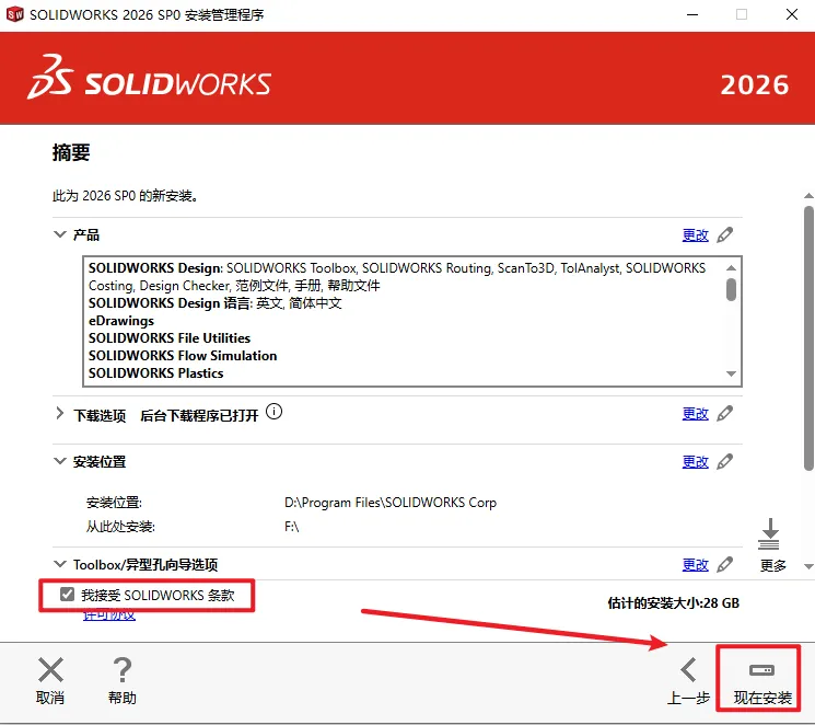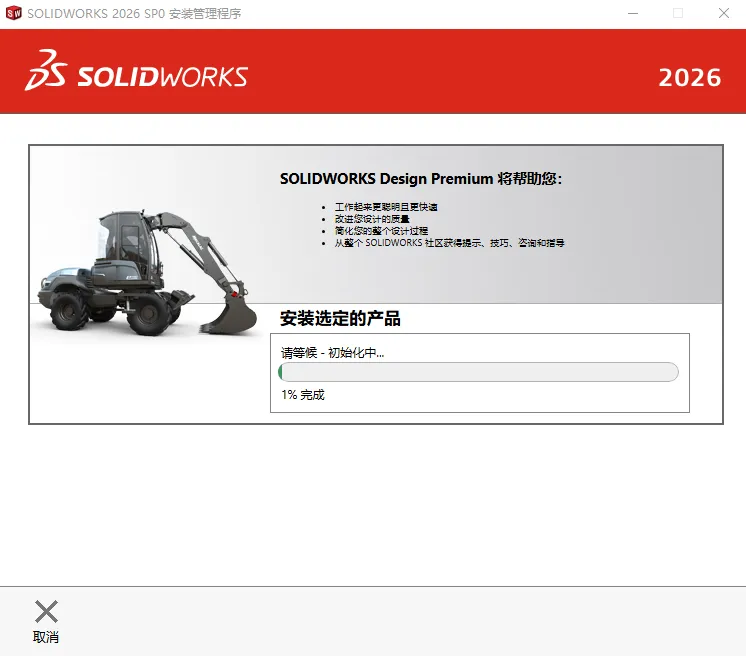 23.取消勾选“为我显示SolidWorks 2026 中的新增功能”,点选”不,谢谢”,点击”完成”