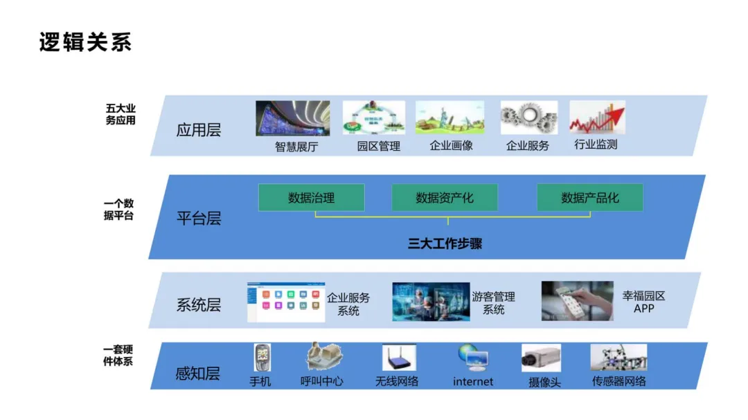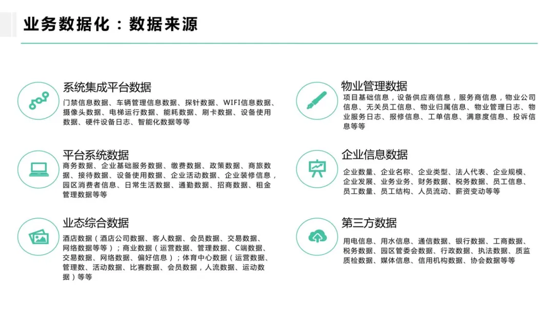 平台的核心是构建一个园区级的数据中台。它如同园区的“数据中枢”与“统一底座”,无缝对接物联网感知设备(如摄像头、传感器)、业务管理系统(如物业、招商、企业服务)、第三方数据源(如政务、工商、舆情)等,实现全域数据的汇聚与融合。基于中台,不仅可以沉淀标准、干净的数据资产,更能以API或服务的形式,灵活、快速地支撑上层各类智慧应用创新,避免重复建设。