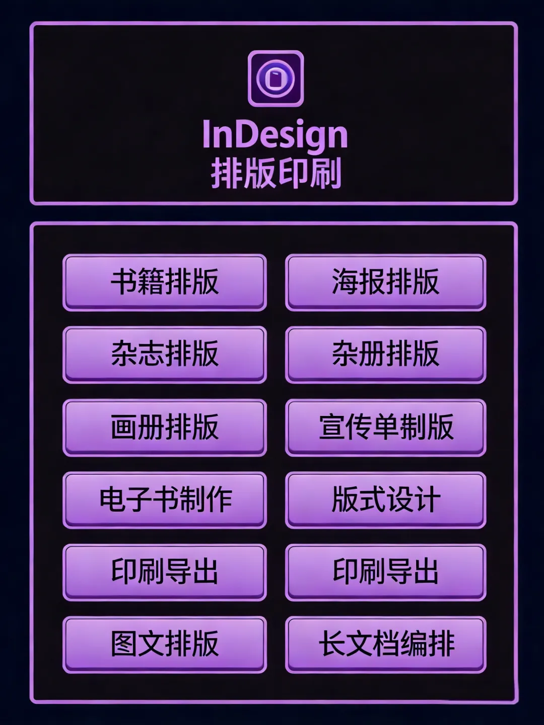 - 核心用途:专注长篇幅版面设计,覆盖书籍/杂志排版、宣传册制作、电子书设计、名片/传单等印刷物料产出。