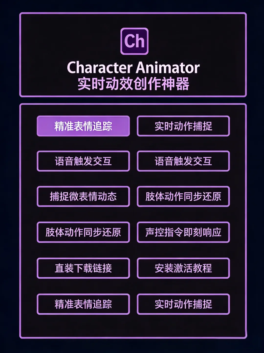 https://pan.baidu.com/s/1RZcvqHJXdgCzPDwTwfKobA?pwd=5q5a7. Character Animator(CH):实时动画的“黑科技”