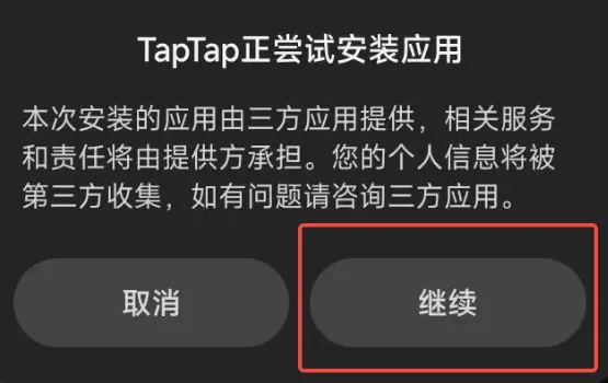 1、关闭超级守护后,通过TapTap下载《冲吧!帕克》,点击以下弹窗【继续安装】按钮即可完成下载,之后依旧点击【继续安装】即可。