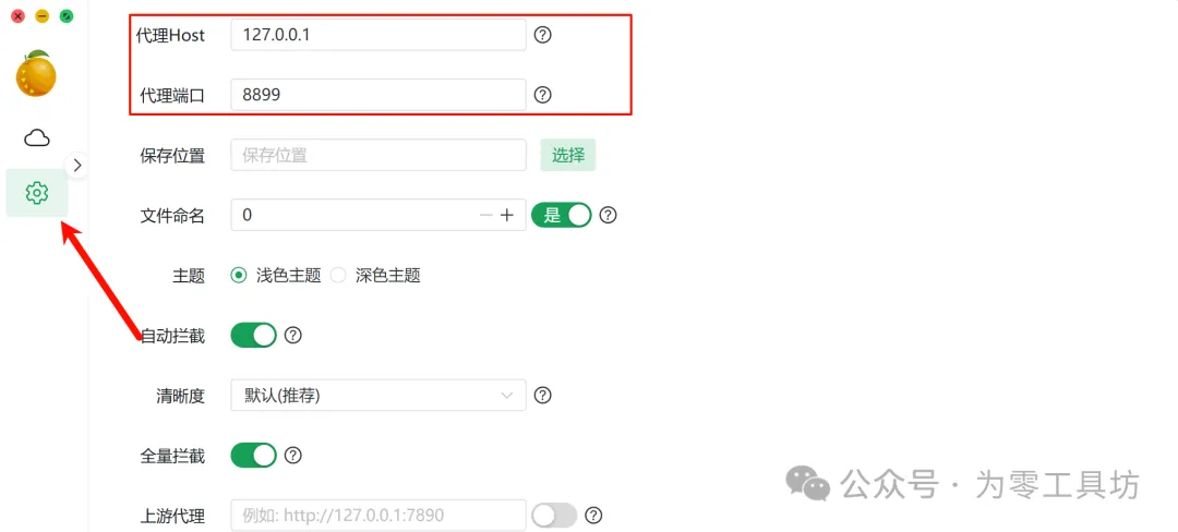 3.打开我们刚刚安装好的下载软件。点击设置--代理Host改为(172.0.0.1)--代理端口改为(8899)然后点击保存。