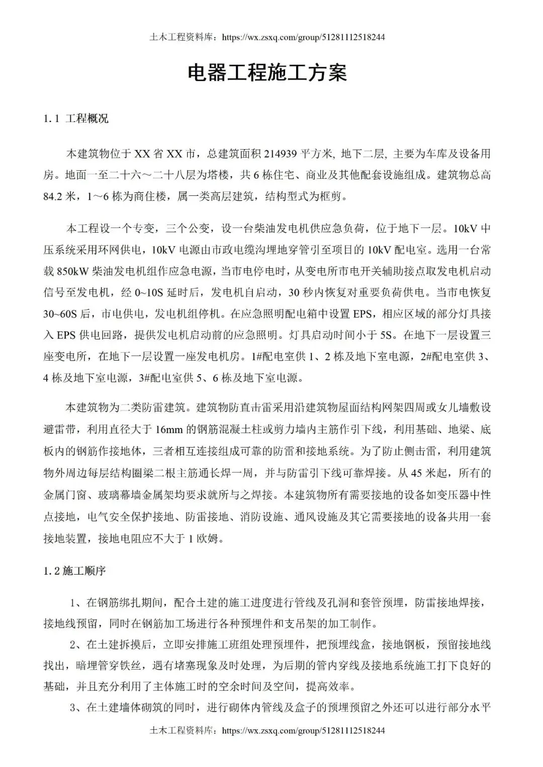 本文档详细阐述了建筑电气工程的施工组织、技术要求和质量保障措施,主要内容如下: