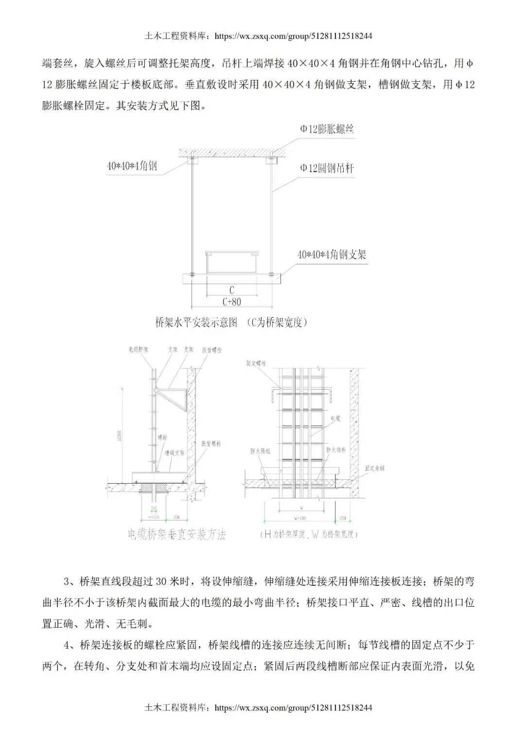 - 桥架安装:明确支架制作、桥架连接和接地要求