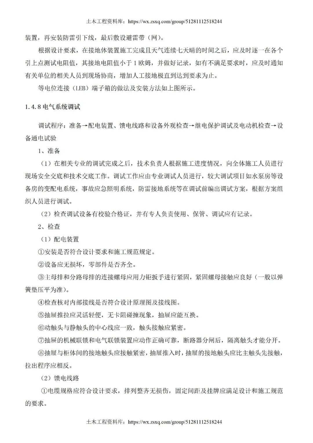 - 配电设备:详述配电箱柜基础制作、安装精度控制及接线规范