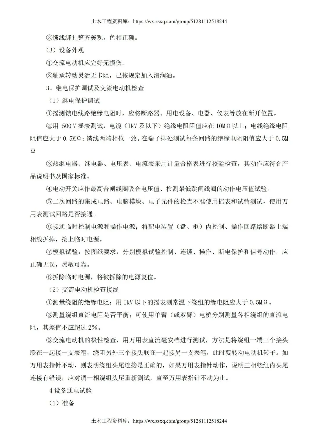 - 系统调试:完整调试流程,包括继电保护调试、电机检查及通电试验